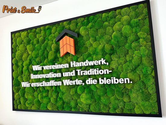 Sie haben ein ganz persönliches Firmenlogo und wollen dieses in Ihrem Unternehmen in Form eines Moosbildes in die Realität umsetzen? Dann sind Sie bei uns genau richtig! Wir fertigen mittels neuester Technik und viel Erfahrung im CAD Bereich Ihr eigenes Firmenlogo in einem 3 Dimensionalen Modell an und besetzen es mit Moos. Egal welche Farbwahl oder Größenordnung. Wir machen es möglich!